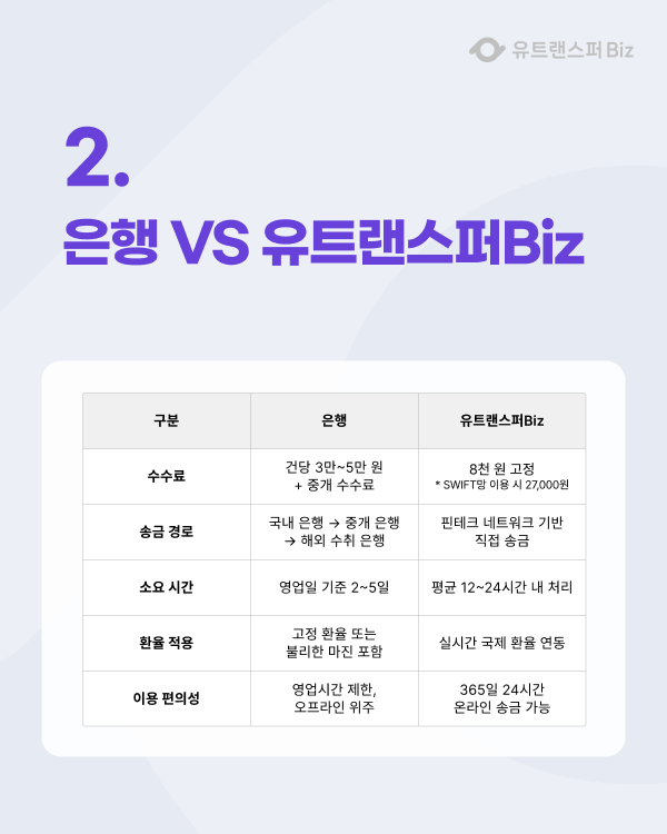 2. 은행 vs 유트랜스퍼Biz 비교