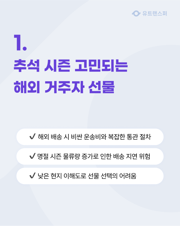 | 해외 거주 재외국민 추석 선물, 유트랜스퍼로 쉽고 저렴하게 보내는 방법 (4) | 2025.09.22 |