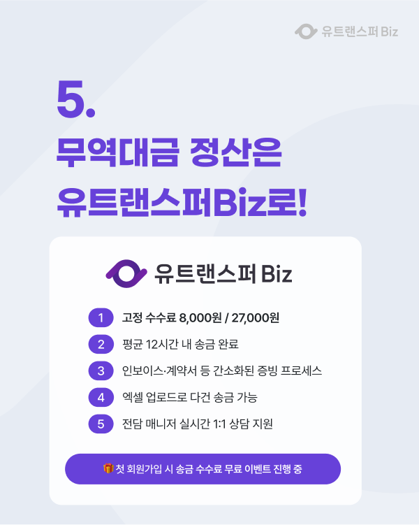 5. 무역대금 정산, 유트랜스퍼Biz로 빠르게 해결!
