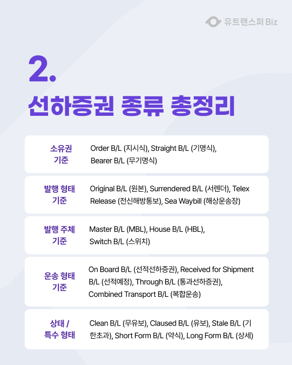 다양한 구분 기준에 따라 B/L은 용도가 달라집니다. 상황에 맞는 선택이 핵심!