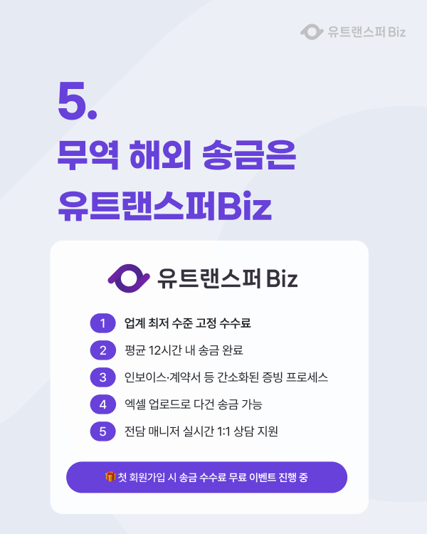 5️⃣ 무역 송금은 간단하게 – 유트랜스퍼Biz 🌍