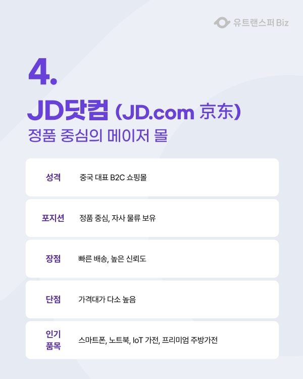 JD닷컴은 ‘정품 보장’으로 유명한 중국 대표 B2C 플랫폼입니다.