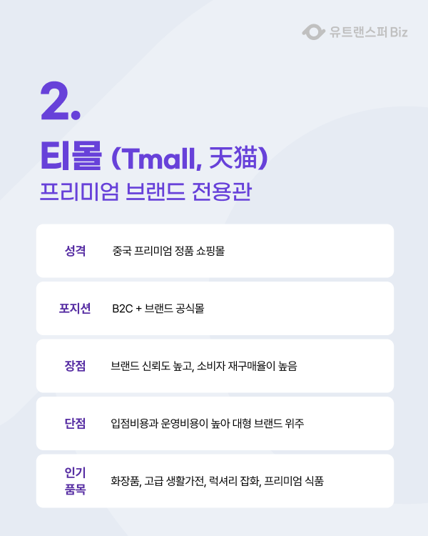 🏬 2️⃣ 티몰(Tmall) – 프리미엄 브랜드 전용관