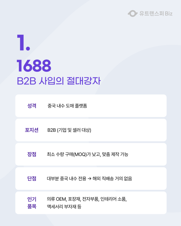 1688은 알리바바 그룹이 운영하는 중국 최대 B2B 도매 플랫폼으로,