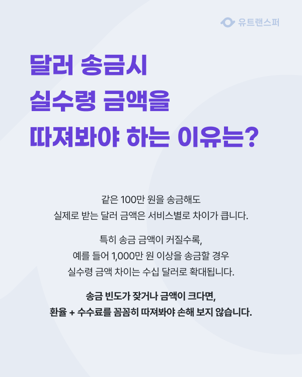이제 달러 해외송금도 유트랜스퍼와 함께
