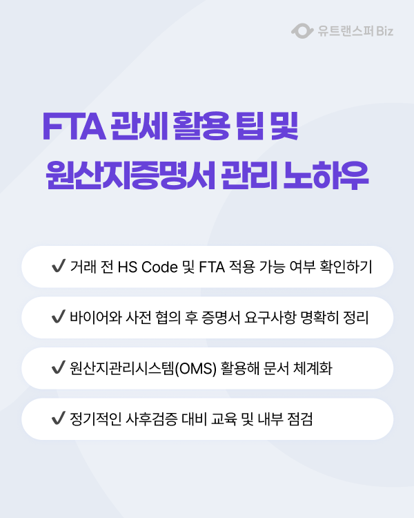 Q5. FTA 원산지증명서 관리 시 유용한 팁은 있나요?