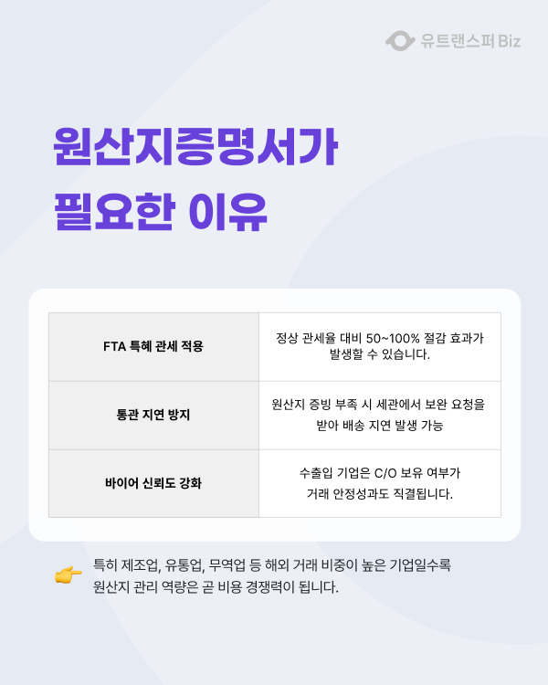 💡 원산지 관리 역량이 곧 비용 경쟁력입니다.