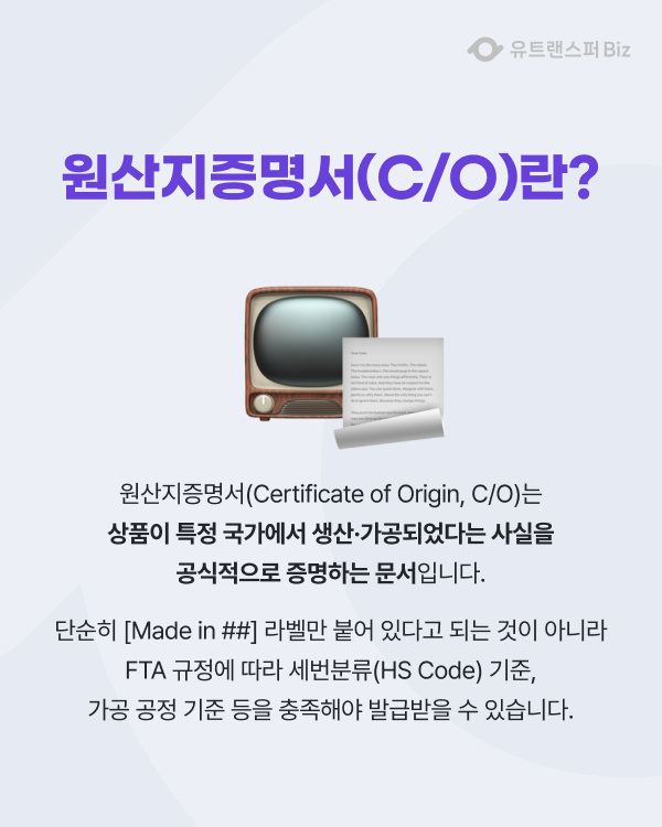 Q1. 원산지증명서(C/O)는 어떤 서류인가요?