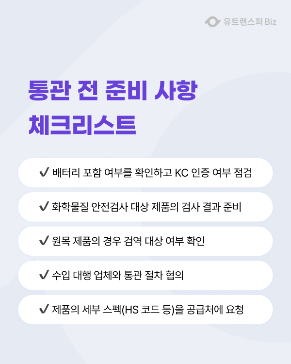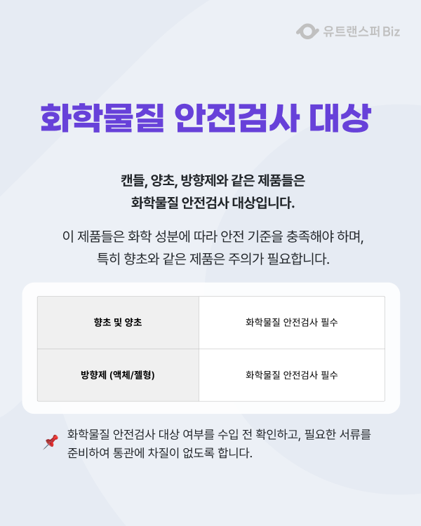 반드시 수입 전에 안전 검사를 받았는지 확인하고, 성적서 등 관련 서류를 준비해야 합니다.