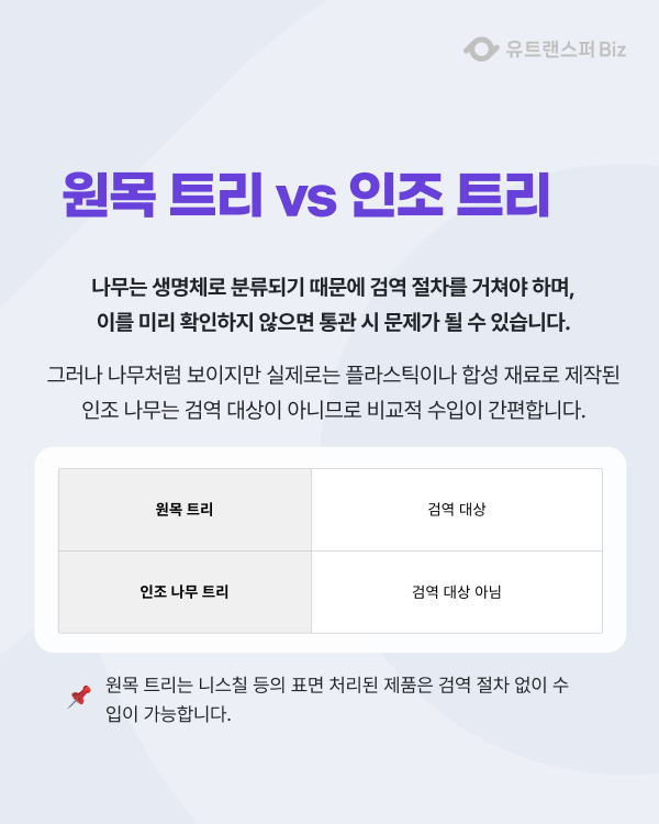 Q3. 진짜 나무 느낌 나는 '원목 트리'랑 '인조 트리', 수입 절차가 많이 다른가요?