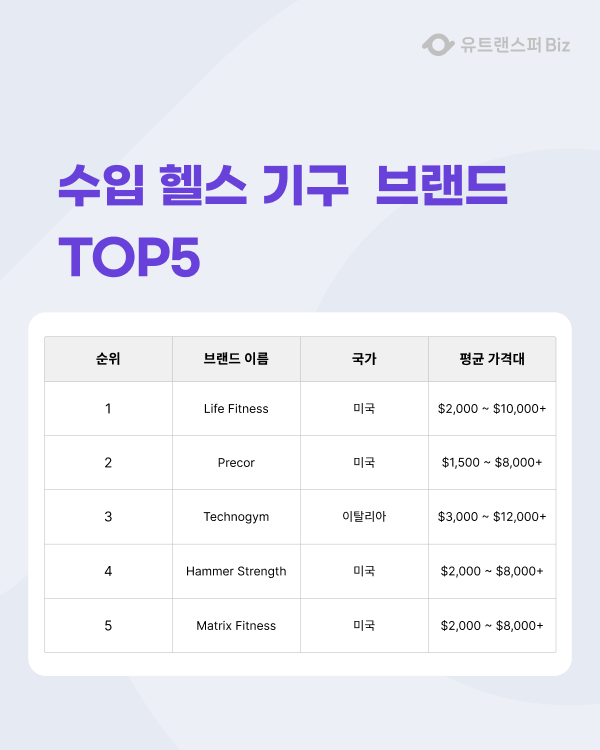 A. 맞습니다. 기구 브랜드가 곧 헬스장의 급을 보여주기도 하죠. 소위 '명품'으로 불리는 수입 브랜드 TOP 5를 소개합니다.