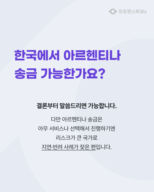 Q5. 왜 유트랜스퍼Biz로 아르헨티나 송금을 준비해야 할까요?