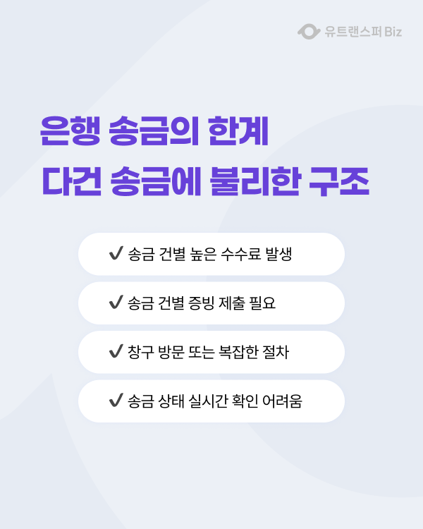 유트랜스퍼Biz처럼 처음부터 기업 송금에 맞춰 설계된 서비스가