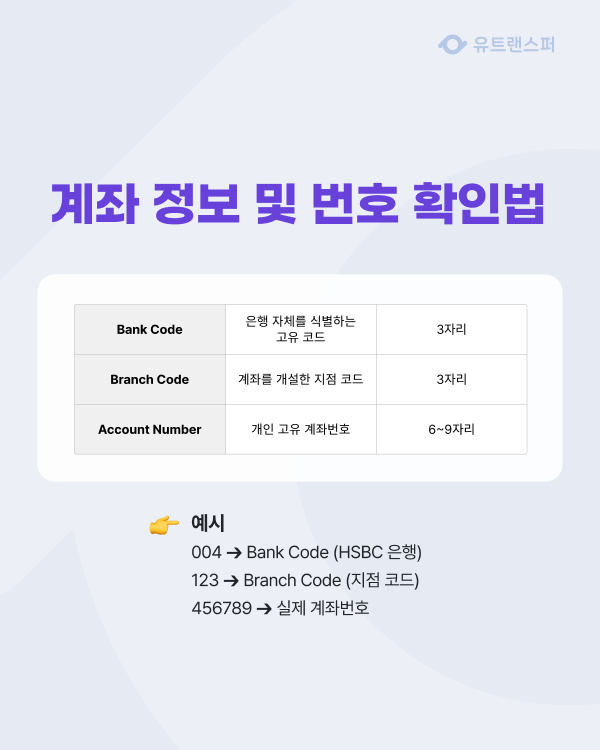 - 004 ➔ Bank Code (HSBC 은행)