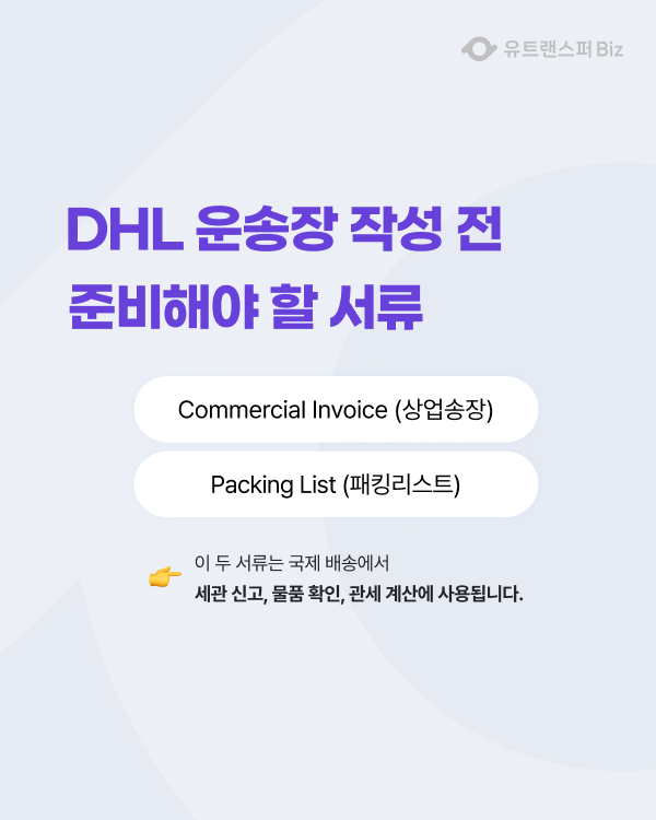 물류는 DHL로 정확하게, 대금 결제는 유트랜스퍼 Biz로 똑똑하게 관리해 보세요. 🚀