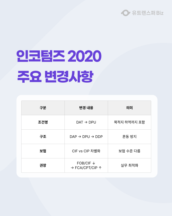 [인코텀즈 2020 핵심 변경 사항]