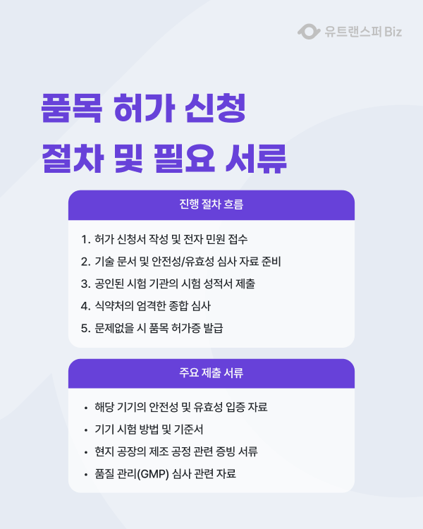 - 기술 문서 및 안전성/유효성 심사 자료 꼼꼼히 준비